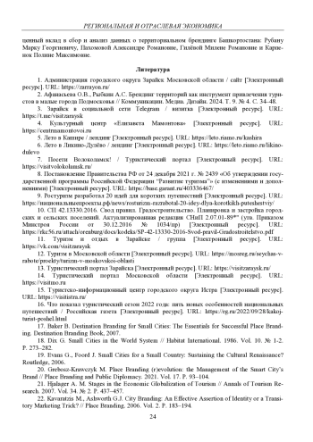 2. Афанасьева О.В., Рыбкин А.С. Брендинг территорий как инструмент привлечения туристов в малые города Подмосковья // Коммуникации. Медиа. Дизайн. 2024. Т. 9. № 4. С. 34-48. EDN: WKZYUH