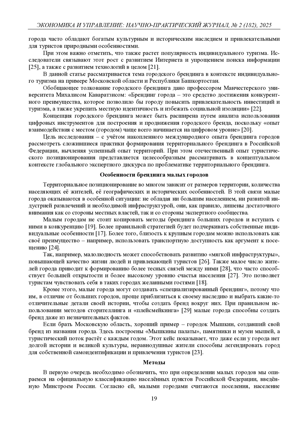 23. Konovalova N. Conservation of Historical and Cultural Identity of Small Towns in Russia: The Role of Brands // 4th International Conference on Art Studies: Science, Experience, Education (ICASSEE 2020). Atlantis Press, 2020. P. 7-11. EDN: UNQYWW