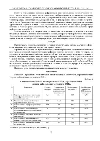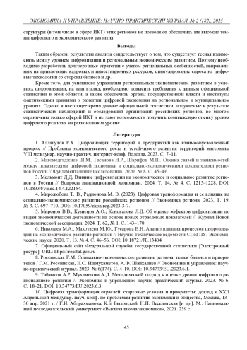 МУХАМЕТОВА А. Д. ВЛИЯНИЕ ЦИФРОВИЗАЦИИ НА РЕГИОНАЛЬНОЕ ЭКОНОМИЧЕСКОЕ РАЗВИТИЕ // ЭКОНОМИКА И УПРАВЛЕНИЕ: НАУЧНО-ПРАКТИЧЕСКИЙ ЖУРНАЛ. 2025. № 2 (182)