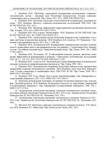5. Исянбаев М.Н. Проблемы эффективной территориальной организации производства. Уфа: Аэтерна, 2024. 160 с. ISBN: 978-5-00177-963-6