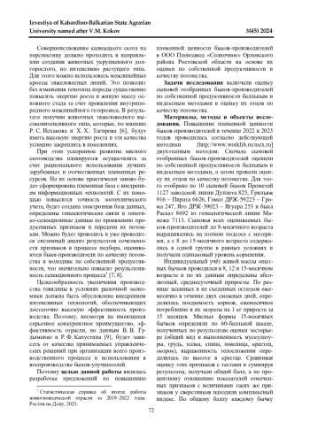 Статья: МЯСНАЯ ПРОДУКТИВНОСТЬ ПОТОМКОВ БЫКОВ-УЛУЧШАТЕЛЕЙ КАЛМЫЦКОЙ ПОРОДЫ (2024)