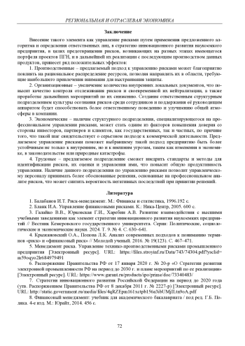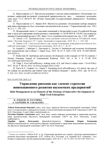 Статья: УПРАВЛЕНИЕ РИСКАМИ КАК ЭЛЕМЕНТ СТРАТЕГИИ ИННОВАЦИОННОГО РАЗВИТИЯ НАУКОЕМКИХ ПРЕДПРИЯТИЙ (2025)
