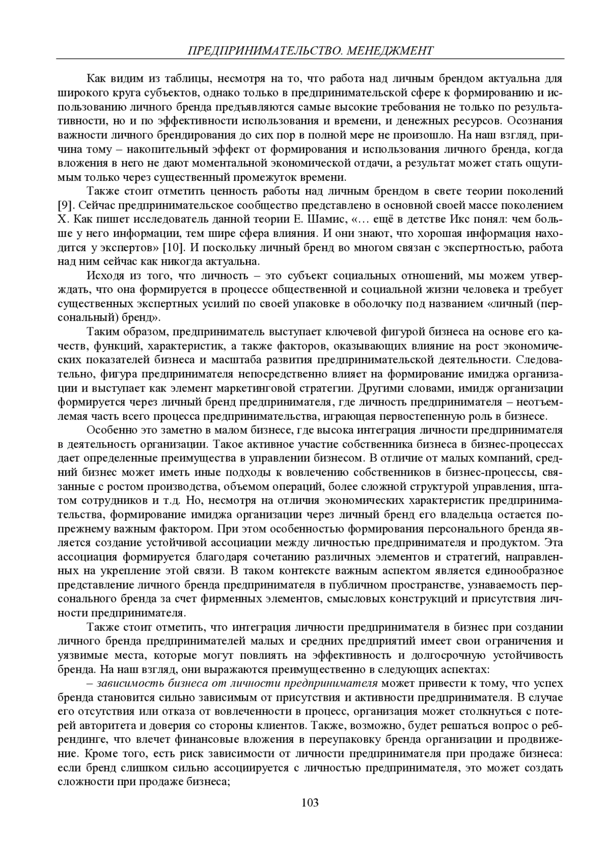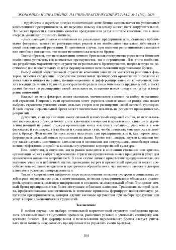НАЗАРОВА У. А., ПОДГОРНАЯ Т. Ю. ПЕРСОНАЛЬНЫЙ БРЕНД ПРЕДПРИНИМАТЕЛЯ КАК ЭЛЕМЕНТ МАРКЕТИНГОВОЙ СТРАТЕГИИ ОРГАНИЗАЦИЙ МАЛОГО И СРЕДНЕГО БИЗНЕСА // ЭКОНОМИКА И УПРАВЛЕНИЕ: НАУЧНО-ПРАКТИЧЕСКИЙ ЖУРНАЛ. 2025. № 2 (182)