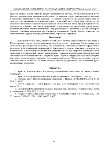 6. Wang N. Coase on the nature of economics // Cambridge Journal of Economics. 2003. Vol. 27, Issue 6. P. 807-829. DOI: 10.1093/cje/27.6.807.7 EDN: GKYWTX
