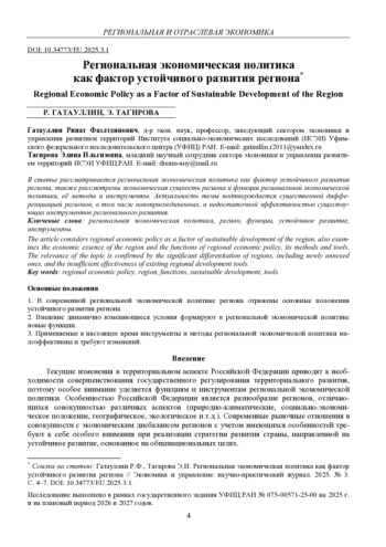 Текущие изменения в территориальном аспекте Российской Федерации приводят к необходимости совершенствования государственного регулирования территориального развития, поэтому особое внимание уделяется функциям и инструментам региональной экономической политики. Особенностью Российской Федерации является разнообразие регионов, отличающихся совокупностью различных аспектов (природно-климатические, социально-экономическое положение, географическое, экологическое и т. д.). Современные рыночные отношения в совокупности с экономическим дисбалансом регионов с учетом имеющихся особенностей требуют к себе особого внимания при реализации стратегии развития страны, направленной на устойчивое развитие, основанное на общенациональных целях