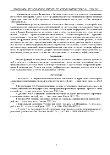 2. Ворончихина Е.Н. Совершенствование модели регионального экономического роста на основе управления неоиндустриальной трансформацией региона (на примере Пермского края): автореф. дис. … канд. экон. наук. Волгоград, 2019. 24 с. EDN: STCWQI