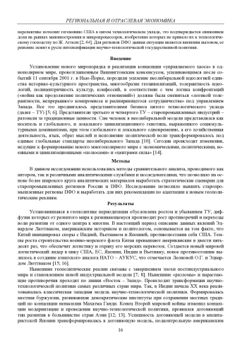 Актуальность исследования новых геополитических реалий определяется переходом от процессов глобализации и интеграции мировой экономической и политической систем к деглобализации и развитию самостоятельных научно-технологических центров. В данных обстоятельствах существенно меняется суть и содержание научно-технологической политики старопромышленных регионов мира и регионов России, в том числе ПФО. Анализ мировой практики показал, что прежние неолиберальные модели проведения научно-технологической политики заменяются догоняющей, основанной на дирижизме и увеличении роли государства [1]. Три основных сценария, предложенные в статье, позволили сформулировать их последствия и влияние на научно-технологическую политику старопромышленных регионов России и ПФО