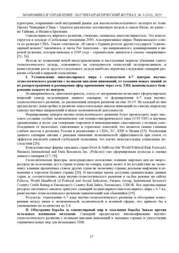 Ключевые фразы: новые геополитические реалии, национальная инновационная система, глобализация, ДЕГЛОБАЛИЗАЦИЯ, ОБЪЕКТЫ ИНТЕЛЛЕКТУАЛЬНОЙ СОБСТВЕННОСТИ, НОУ-ХАУ, НЕМАТЕРИАЛЬНЫЕ АКТИВЫ, догоняющее развитие, глобальный центр