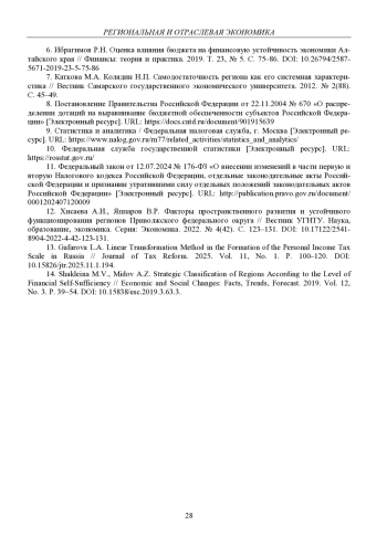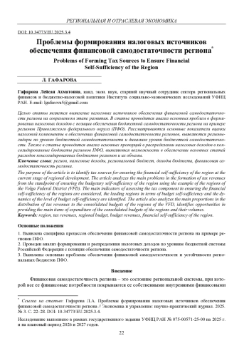 Статья: ПРОБЛЕМЫ ФОРМИРОВАНИЯ НАЛОГОВЫХ ИСТОЧНИКОВ ОБЕСПЕЧЕНИЯ ФИНАНСОВОЙ САМОДОСТАТОЧНОСТИ РЕГИОНА (2025)