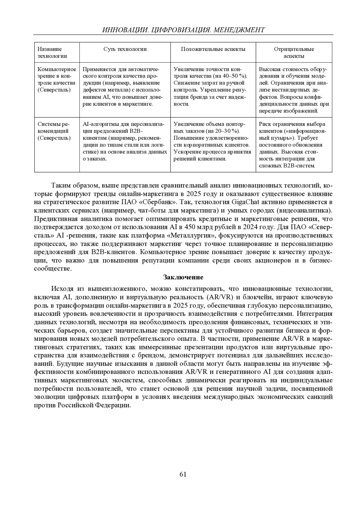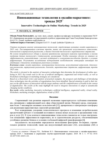 Статья: ИННОВАЦИОННЫЕ ТЕХНОЛОГИИ В ОНЛАЙН-МАРКЕТИНГЕ: ТРЕНДЫ 2025 (2025)