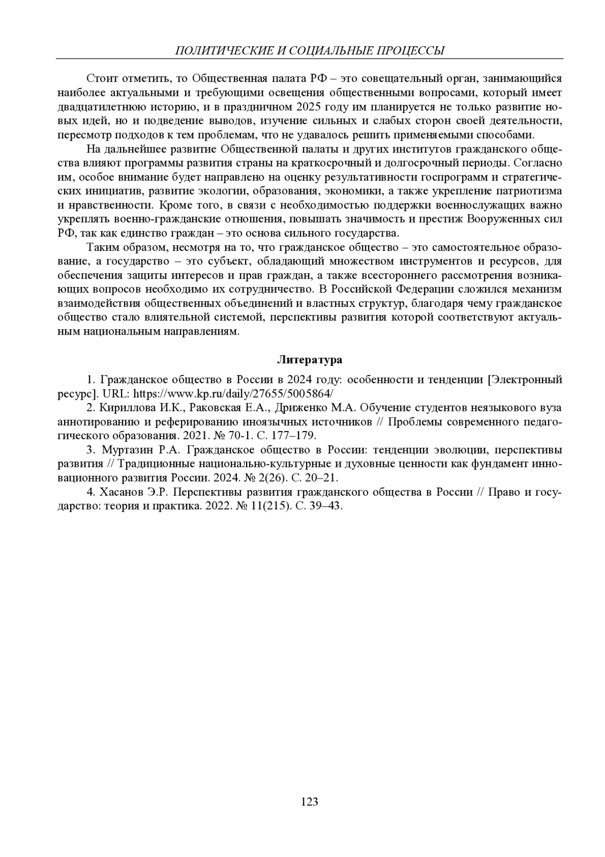 4. Хасанов Э.Р. Перспективы развития гражданского общества в России // Право и государство: теория и практика. 2022. № 11(215). С. 39-43