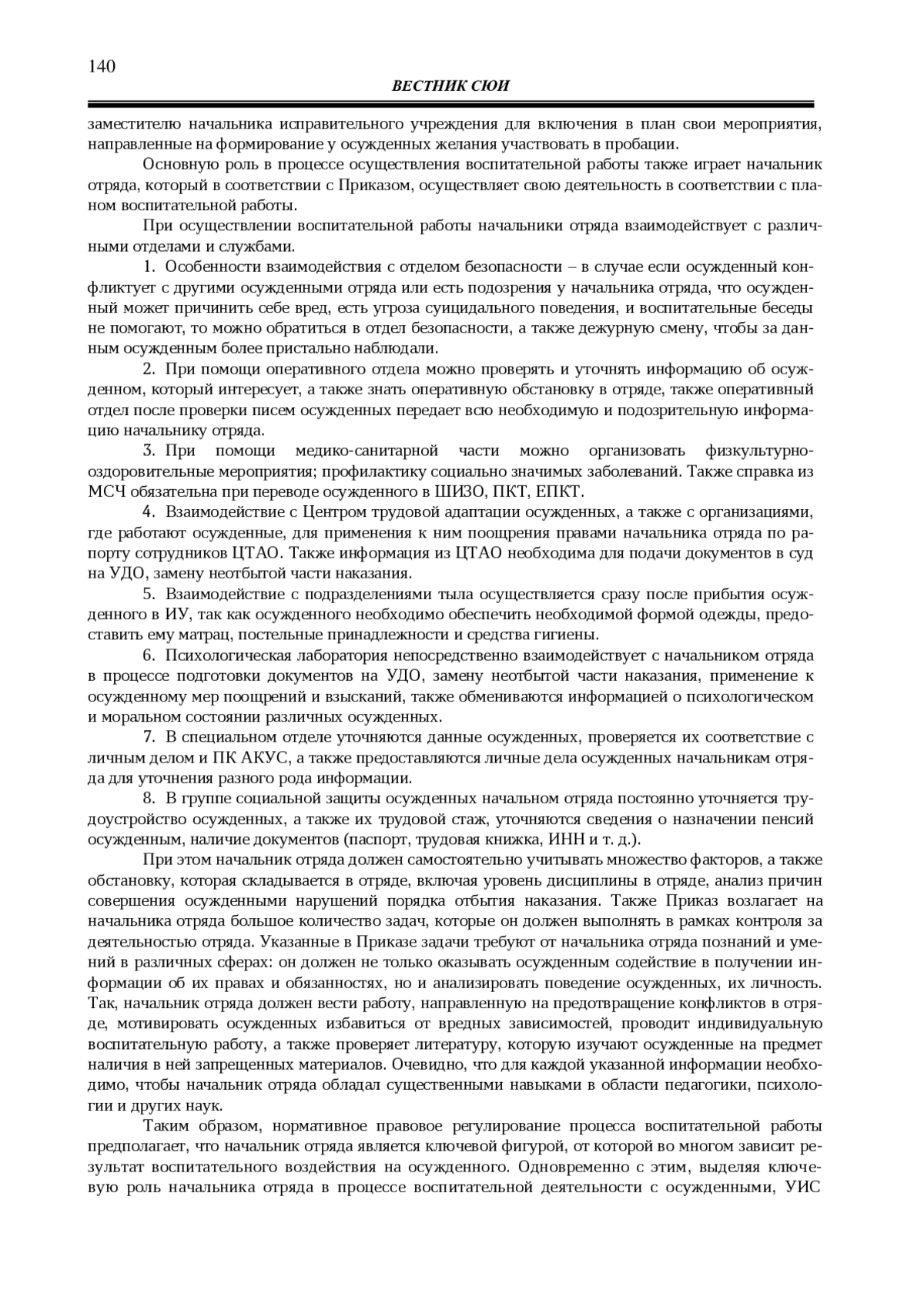 3. Исакова Т. И. О некоторых проблемах осуществления воспитательной работы с осужденными к лишению свободы // Вестник науки. 2024. Т. 2. № 10 (79). С. 249-251. EDN: WSSMEH
