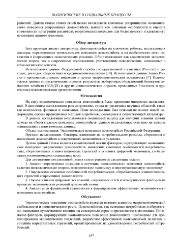 Ключевые фразы: ЭКОНОМИЧЕСКОЕ ПОВЕДЕНИЕ, ДОМОХОЗЯЙСТВА, потребление, СБЕРЕЖЕНИЯ, инвестиции, макроэкономические факторы, микроэкономические факторы, социально-культурные факторы, финансовая грамотность, социальные нормы, ПОВЕДЕНЧЕСКАЯ ЭКОНОМИКА
