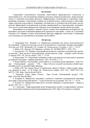 Статья: ФАКТОРЫ И ОСОБЕННОСТИ СОВРЕМЕННОГО ЭКОНОМИЧЕСКОГО ПОВЕДЕНИЯ ДОМОХОЗЯЙСТВ (2025)