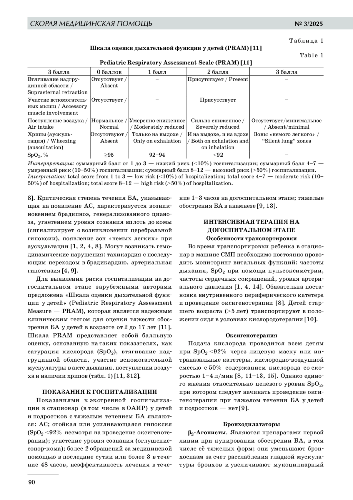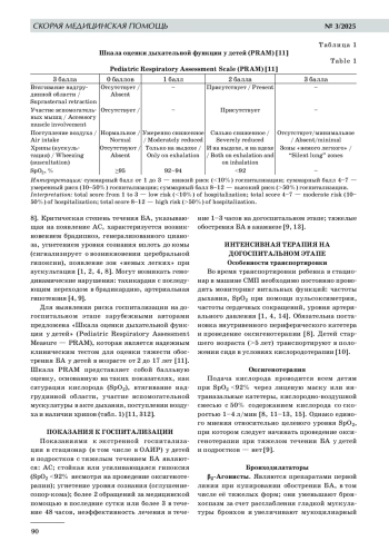 Статья: ОСОБЕННОСТИ ОКАЗАНИЯ НЕОТЛОЖНОЙ ПОМОЩИ ДЕТЯМ И ПОДРОСТКАМ С ТЯЖЕЛЫМ ТЕЧЕНИЕМ БРОНХИАЛЬНОЙ АСТМЫ НА ДОГОСПИТАЛЬНОМ ЭТАПЕ. ОБЗОР (2025)