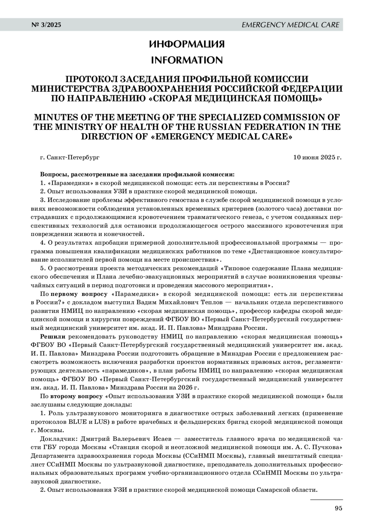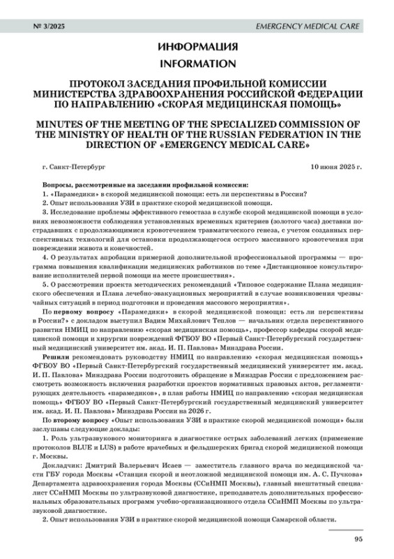 1. «Парамедики» в скорой медицинской помощи: есть ли перспективы в России?