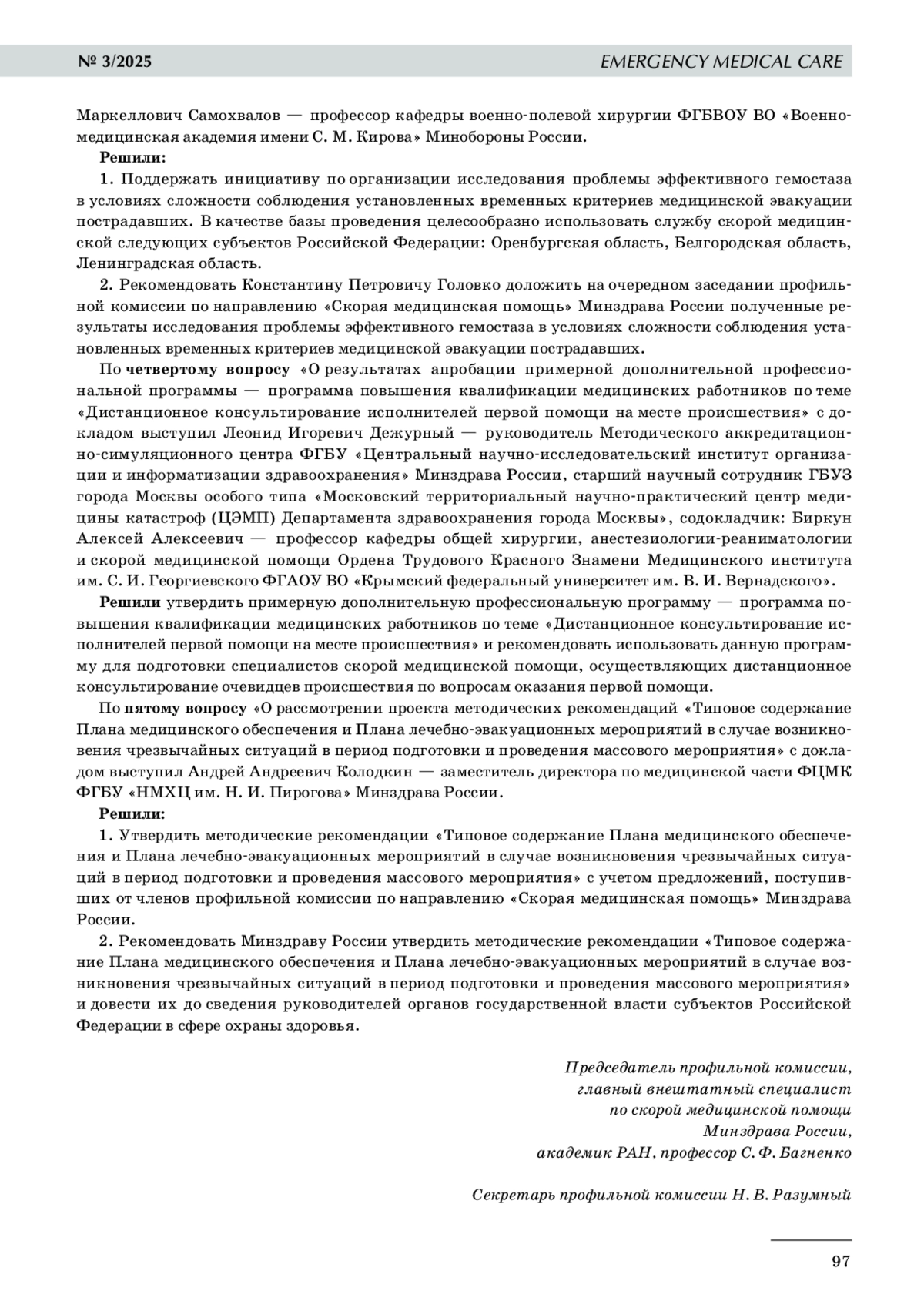 4. О результатах апробации примерной дополнительной профессиональной программы — программа повышения квалификации медицинских работников по теме «Дистанционное консультирование исполнителей первой помощи на месте происшествия».