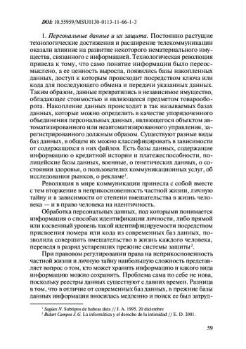 Персональные данные и их защита. Постоянно растущие технологические достижения и расширение телекоммуникации оказали влияние на развитие некоторого нематериального имущества, связанного с информацией. Технологическая революция привела к тому, что само понятие информации было переосмыслено, а ее ценность выросла, появились базы накопленных данных, доступ к которым происходит посредством ключа или кода для последующего обмена и передачи указанных данных.