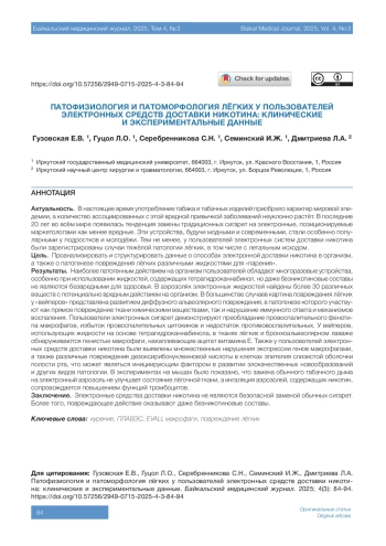 Цель. Проанализировать и структурировать данные о способах электронной доставки никотина в организм, а также о патогенезе повреждения лёгких различными жидкостями для «парения».
