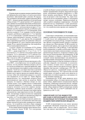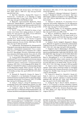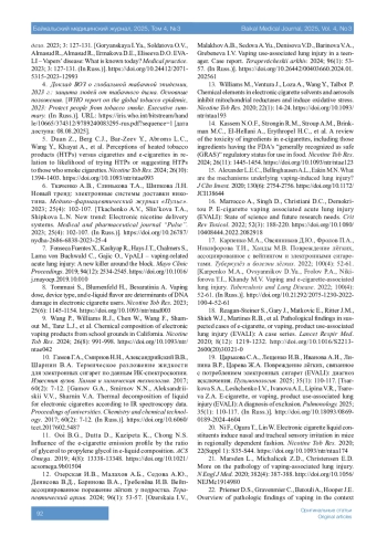 3. Горянская И.Я., Солдатова О.В., Алмасуд Р. и др. EVALI - болезнь вейперов: что известно на сегодняшний день? Лечебное дело. 2023;3:127-131. DOI: 10.24412/2071-5315-2023-12993