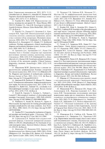 25. Гусева А.Л., Замерград М.В., Левин О.С. Синдром Рамсея-Ханта. Журнал неврологии и психиатрии им С.С. Корсакова. 2020;120(9):151 157. DOI: 10.17116/jnevro2020120091151