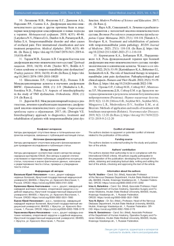32. Шахалиева Л.Р., Сорокина Н.Д., Польма Л.В. Междисциплинарные аспекты в изучении дисфункции ВНЧС. Ортодонтия. 2024;(1):2-9. URL: https://orthodont.elpub.ru/jour/article/view/3.