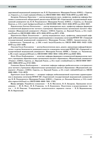 В 2025 году журналу «Скорая медицинская помощь» исполняется 25 лет. Журнал является печатным органом Российского общества скорой медицинской помощи, на страницах журнала публикуются решения Профильной комиссии Минздрава России по направлению «Скорая медицинская помощь», обсуждаются актуальные вопросы скорой медицинской помощи, службы медицины катастроф, проекты клинических рекомендаций. Цель исследования: провести анализ публикационной активности журнала за 25 лет. Материалы и методы. Анализ публикационной активности проведен по данным научной электронной библиотеки Elibrary. ru. Результаты исследования. За период с 01.01.2000 по 31.03.2025 издано 102 номера (выпуска) журнала с общим количеством статей 2344. Журнал включен в Перечень рецензируемых научных изданий, в которых должны быть опубликованы результаты диссертаций на соискание ученой степени кандидата наук и доктора наук по семи научным специальностям (категория 2). Отмечается устойчивая тенденция к увеличению числа цитирования статей, пятилетнего и двухлетнего импакт-фактора, среднего индекса Хирша авторов статей. Число цитирований в 2008 году составило 31, в 2023 году — 158; двухлетний импакт-фактор РИНЦ в 2008 году — 0,11, в 2023 году — 0,40; пятилетний импакт-фактор РИНЦ в 2008 году — 0,05, в 2023 году — 0,40; средний индекс Хирша авторов публикаций в 2008 году — 3,68, в 2023 году — 7,36. Заключение. Журнал «Скорая медицинская помощь» активно развивается и имеет потенциал для включения в Белый список научных изданий.