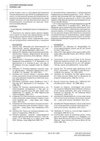 Kuznetsov A.V. Strengthen the fight against threats of murder, grievous bodily harm or destruction of property // Soviet justice. 1964. No. 16. 3 p.
