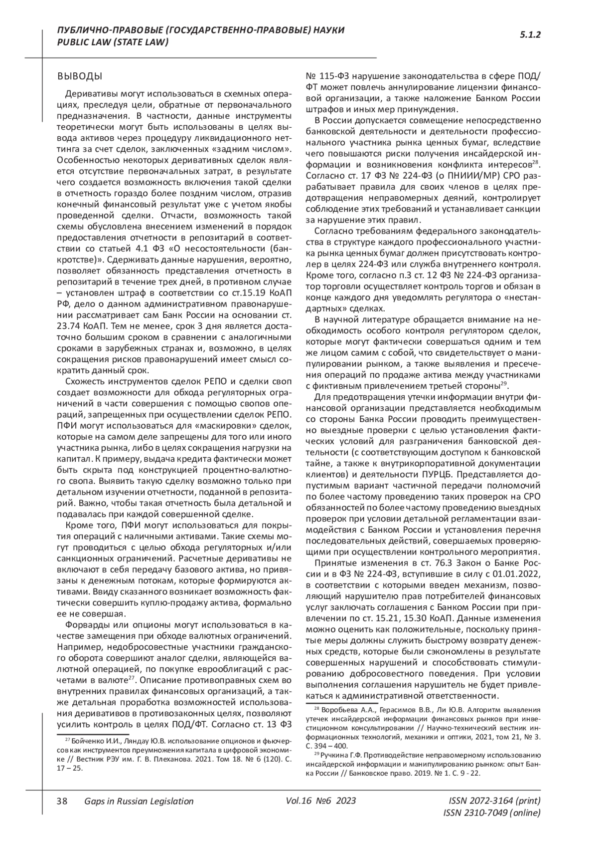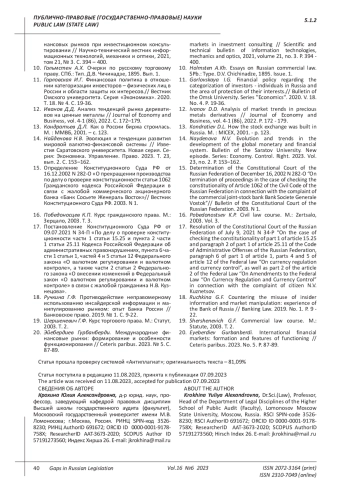 18. Ручкина Г.Ф. Противодействие неправомерному использованию инсайдерской информации и манипулированию рынком: опыт Банка России // Банковское право. 2019. № 1. С. 9-22. EDN: YVAXLN