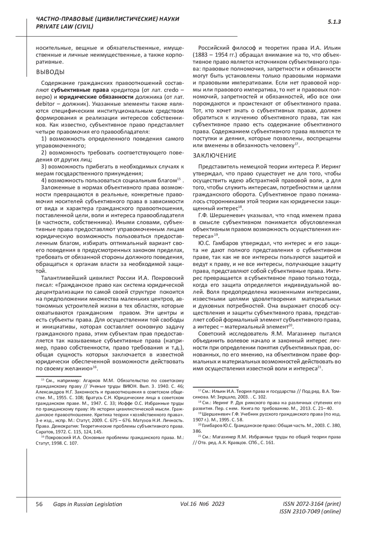 Избранные труды. В 4 т. Т. 4. СПб., 2010. С. 48 - 49. Избранные труды по гражданскому праву: Из истории цивилистической мысли. Гражданское правоотношение. Критика теории “хозяйственного права”. С. 669.