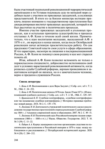 1. Кони А. Ф. Воспоминания о деле Веры Засулич // Собр. соч.: в 8 т. Т. 2. М., 1966. С. 24-252.