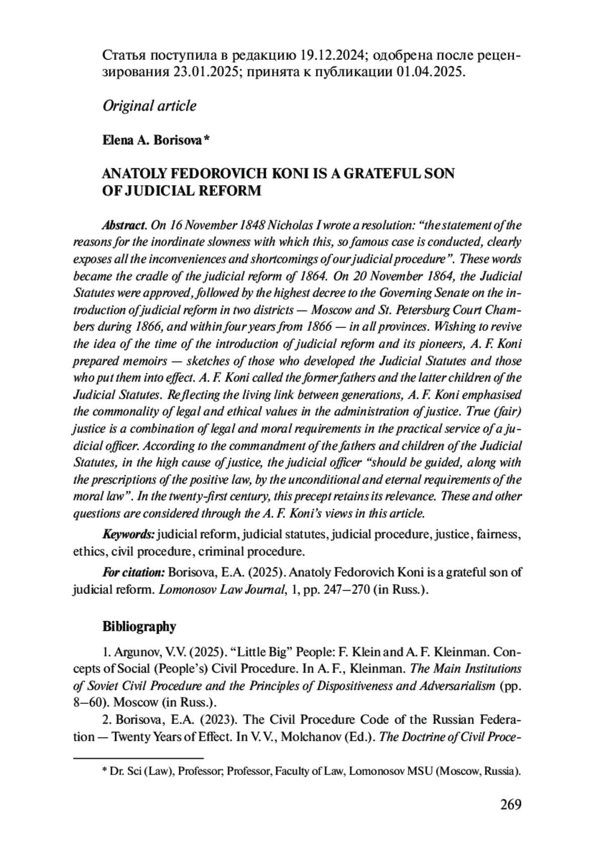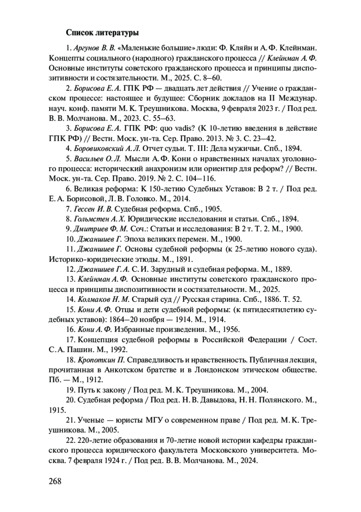 1. Аргунов В. В. “Маленькие большие” люди: Ф. Кляйн и А. Ф. Клейнман. Концепты социального (народного) гражданского процесса // Клейнман А. Ф. Основные институты советского гражданского процесса и принципы диспозитивности и состязательности. М., 2025. С. 8-60.