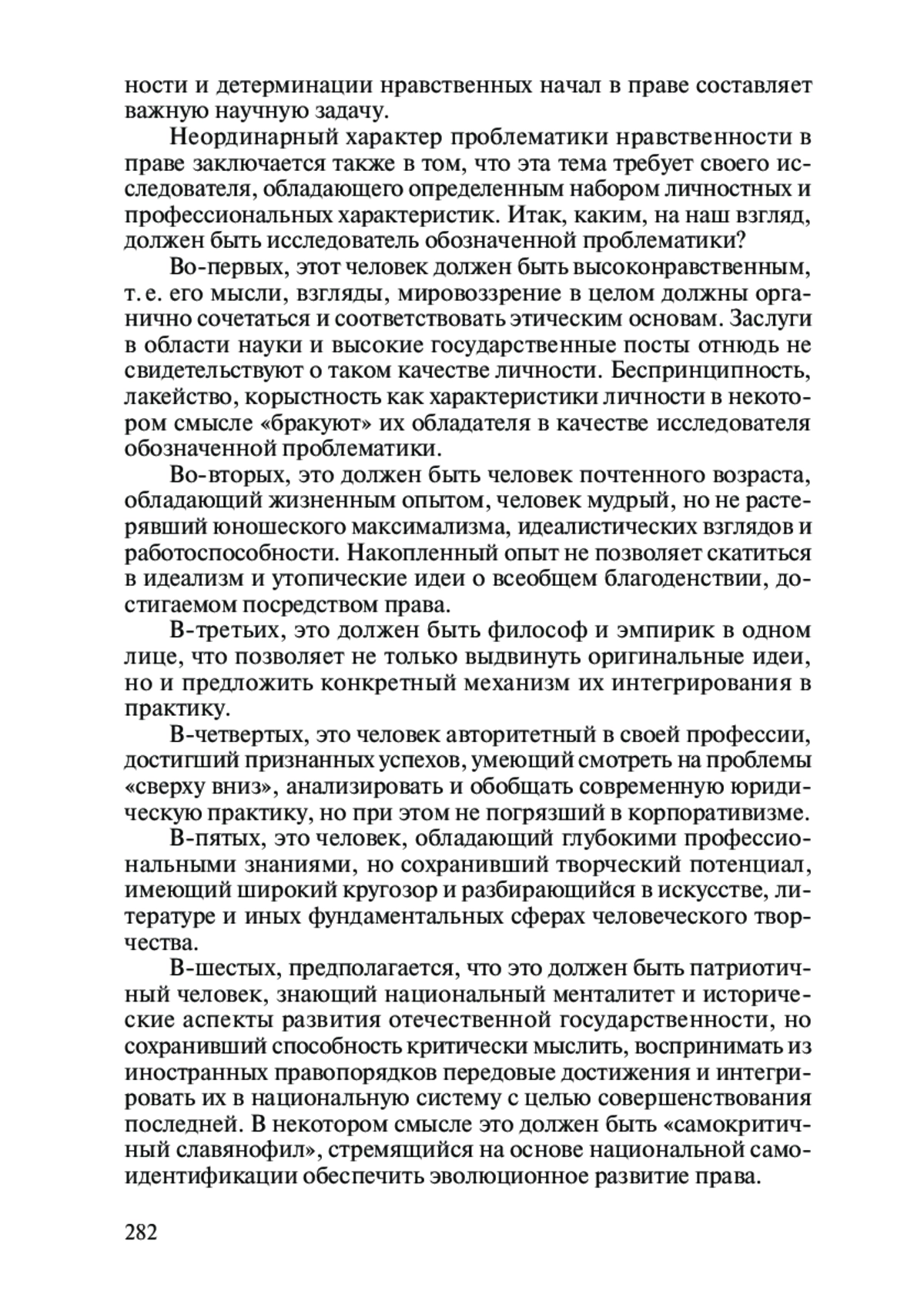 С методологической точки зрения данная тема весьма затруднительна, поскольку предполагает такой синтез научных методов и способов познания, который обеспечивает глубокие и оригинальные идеи нравственности в праве и различных видах юридически значимой деятельности, не скатывающиеся к известным и тривиальным выводам этического характера (например, честного отношения к профессии).