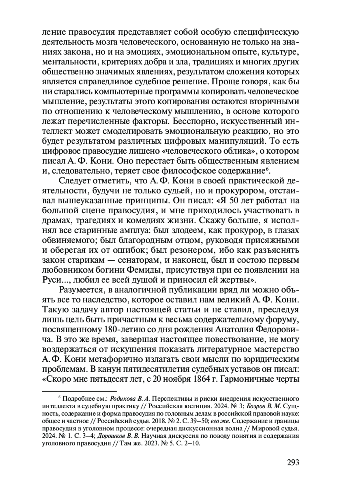 5. Родикова В. А. Перспективы и риски внедрения искусственного интеллекта в судебную практику // Российская юстиция. 2024. № 3. EDN: TASRVU