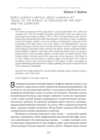 7. 	Букина Т. В. “Забытая” рукопись Б. В. Асафьева: “Строение вещества” в методологических поисках ученого первых послереволюционных лет // Временник Зубовского института. 2023. № 3. С. 181-197. EDN: VMPKTA