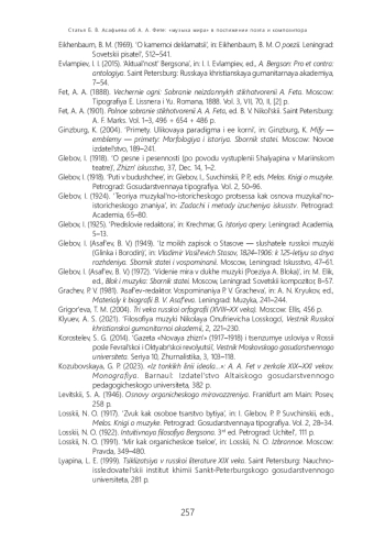 14. 	Глебов И. (Асафьев Б. В.). Видение мира в духе музыки: (Поэзия А. Блока) // Блок и музыка: Сб. ст. / Сост. М. Элик. М.; Л.: Сов. композитор, 1972. С. 8-57.