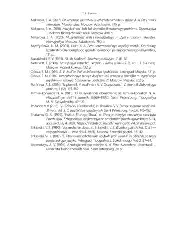 28. 	Макарова С. А. Музыкальность лирики и вербализация музыки в русском искусстве. М.: Азбуковник, 2020. 760 с.