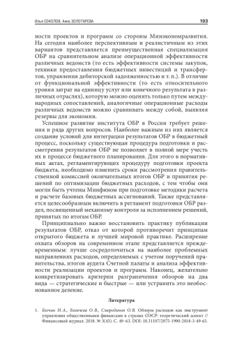 В России с 2019 года появился новый инструмент управления бюджетной эффективностью — обзоры бюджетных расходов (ОБР), подготовка которых осуществляется силами Минфина и преследует цель выявить возможности для более экономного расходования бюджетных ресурсов. Несмотря на популярность данного инструмента среди стран ОЭСР (по итогам 2023 года его применяли 34 из 35 членов этой организации), общей для зарубежных государств и России проблемой, по мнению авторов, является отсутствие четкого разграничения целей и задач ОБР и ранее возникших инструментов анализа эффективности бюджетных расходов, включая аудит эффективности, возложенный на высшие органы аудита, создаваемые парламентом, и анализ эффективности проектов и программ, осуществляемый силами исполнительной власти в рамках бюджетирования, ориентированного на результат. Основной целью статьи является поиск места ОБР среди других инструментов управления бюджетными расходами, а также подходов к решению других проблем, от которых зависит качество функционирования этого института. Авторы анализируют преимущества и недостатки различных вариантов разграничения функций и задач обзоров и аудита/анализа эффективности, осуществляемого Счетной палатой и Минэкономразвития России, предлагают подходы к выбору объектов обзоров и определению содержания различных их видов. В статье сформулированы предложения относительно изменений законодательства, необходимых для повышения степени интеграции ОБР в бюджетный процесс, чтобы обеспечить возможность учета их результатов при внесении изменений в профильные госпрограммы и уточнении распределения бюджетных ассигнований на предстоящий год. Необходимым, по мнению авторов, является также открытая публикация обзоров и внедрение механизмов контроля за реализацией решений, принятых по их итогам.