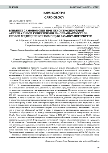 Ruksin V. V., Grishin O. V., Miroshnichenko A. G. Self-help in uncontrolled arterial hypertension. Emergency medical care, 2021, Vol. 22, No. 3, рр. 4-11 (In Russ.).