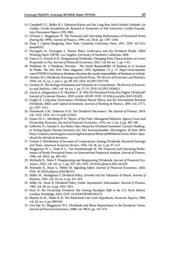 23. Gugler K. Corporate Governance, Dividend Payout Policy, and the Interrelation Between Dividends, R&D, and Capital Investment // Journal of Banking & Finance. 2003. Vol. 27(7). P. 1297-1321.