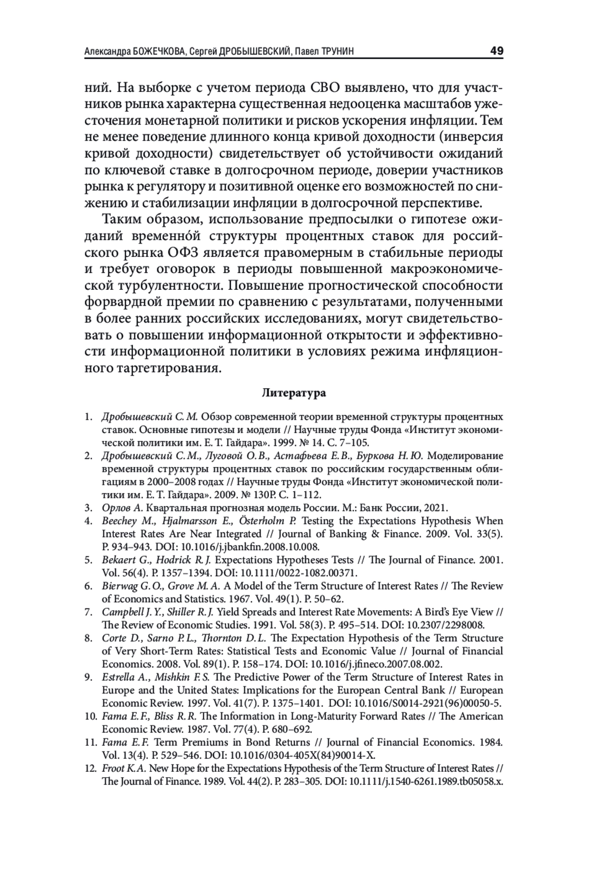 1. Дробышевский С. М. Обзор современной теории временной структуры процентных ставок. Основные гипотезы и модели // Научные труды Фонда «Институт экономической политики им. Е. Т. Гайдара». 1999. № 14. С. 7-105.