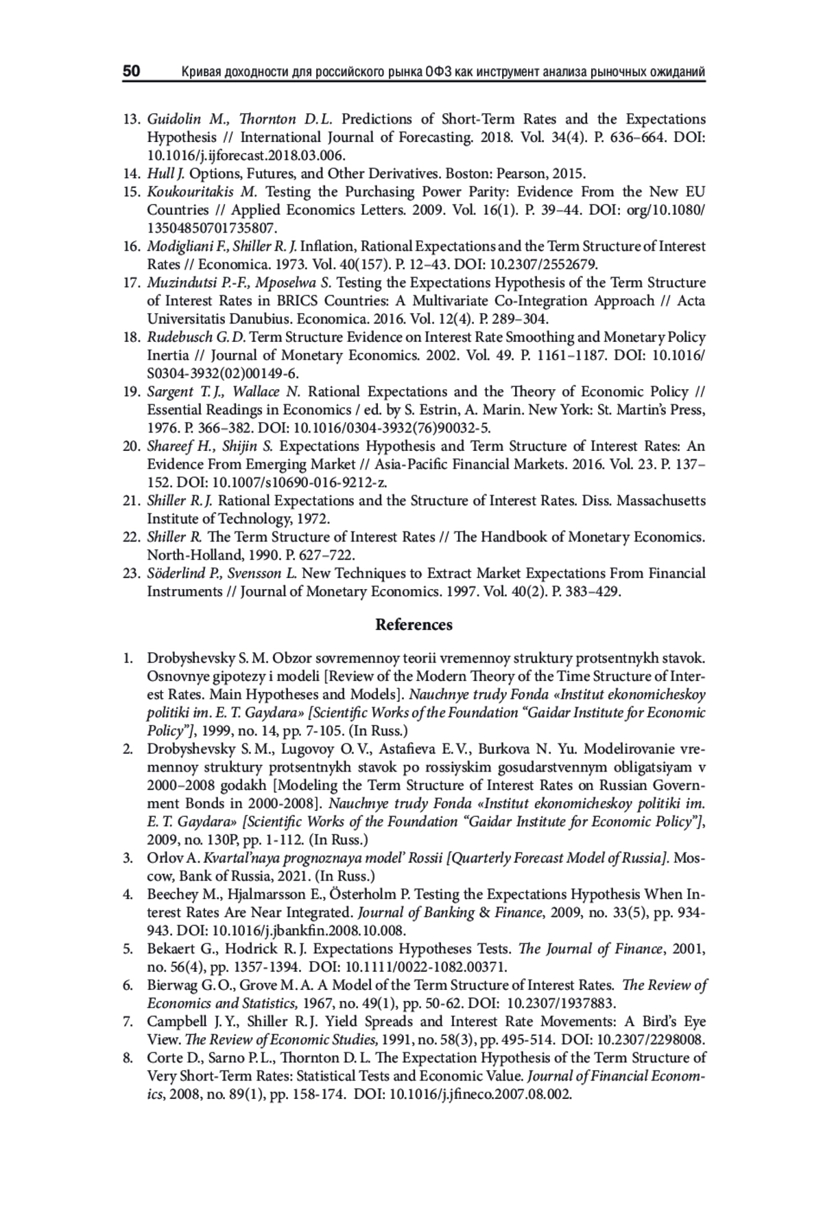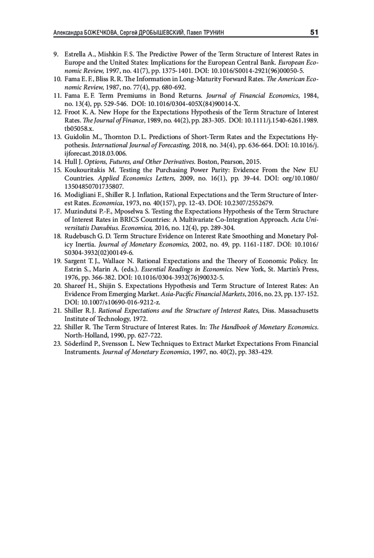 20. Shareef H., Shijin S. Expectations Hypothesis and Term Structure of Interest Rates: An Evidence From Emerging Market // Asia-Pacific Financial Markets. 2016. Vol. 23. P. 137- 152. https://doi.org/10.1007/s10690-016-9212-z.