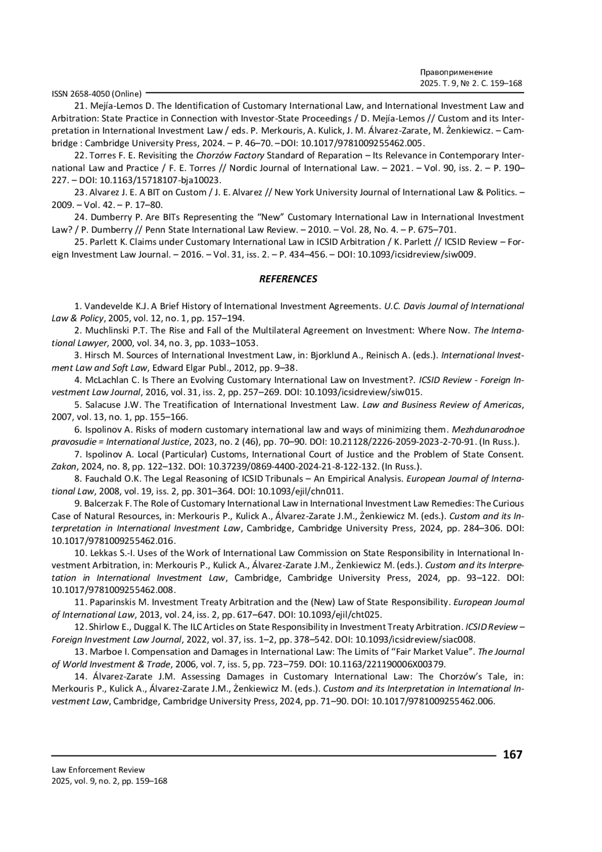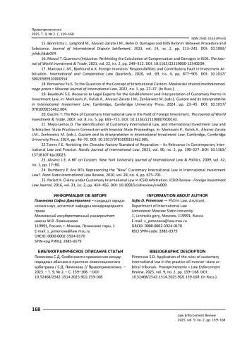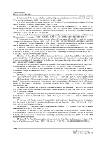 17. Marcoux J.-M. Foreign Investors’ Responsibilities and Contributory Fault in Investment Arbitration / J.-M. Marcoux, A. K. Bjorklund // International and Comparative Law Quarterly. - 2020. - Vol. 69, iss. 4. - P. 877- 905. - https://doi.org/10.1017/S0020589320000354.