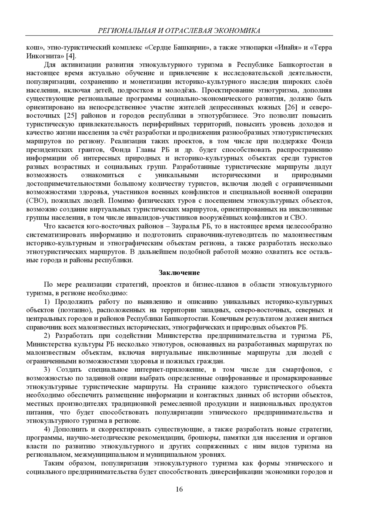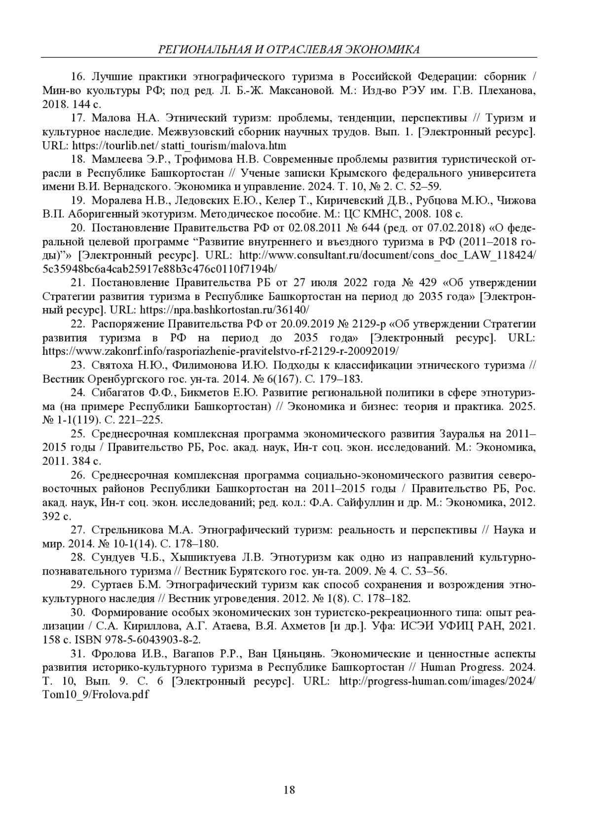 Статья: РАЗВИТИЕ ЭТНОТУРИЗМА В РЕСПУБЛИКЕ БАШКОРТОСТАН КАК ФАКТОР МОНЕТИЗАЦИИ УНИКАЛЬНЫХ ОБЪЕКТОВ ИСТОРИКО-КУЛЬТУРНОГО НАСЛЕДИЯ ДЛЯ ПОВЫШЕНИЯ ДОХОДОВ И КАЧЕСТВА ЖИЗНИ НАСЕЛЕНИЯ РЕГИОНА (2025)