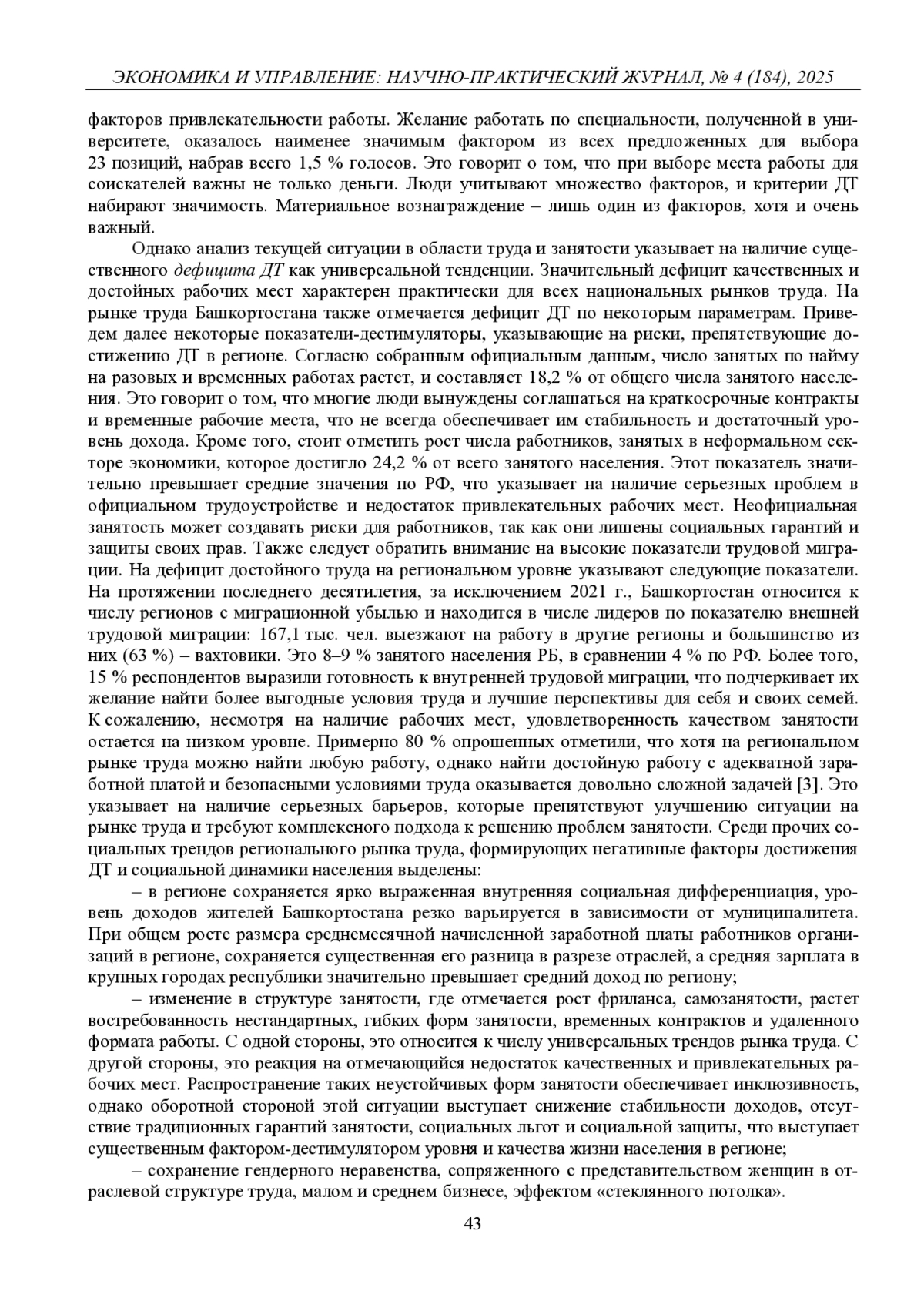 Достойный труд выступает основным фактором экономического и социального развития. Однако на современном этапе на всех уровнях рынка труда наблюдается его дефицит по тем или иным параметрам.