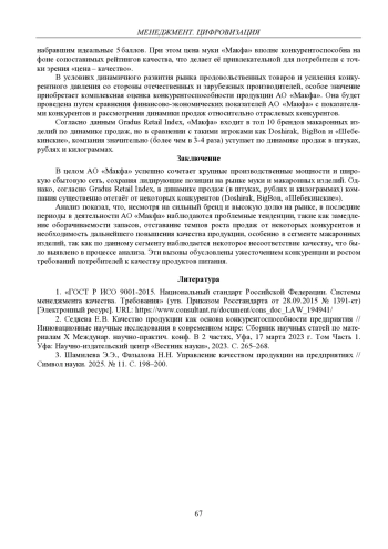 3. 	Шамилева Э.Э., Фазылова Н.Н. Управление качеством продукции на предприятиях // Символ науки. 2025. № 11. С. 198-200.