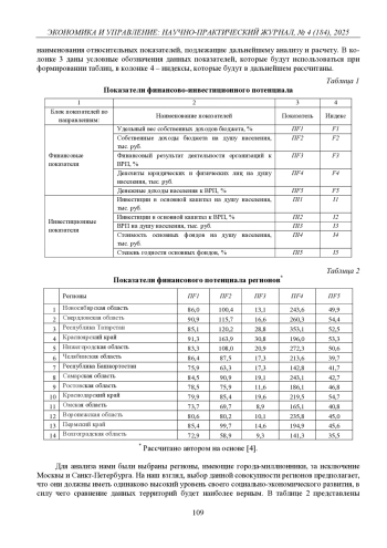 Статья: ОЦЕНКА ФИНАНСОВО-ИНВЕСТИЦИОННОГО ПОТЕНЦИАЛА РЕГИОНОВ (2025)