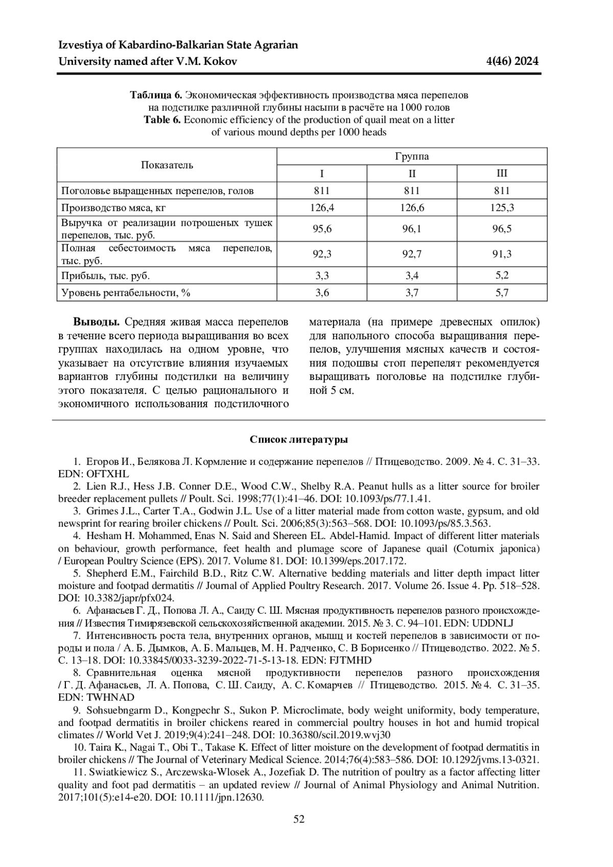5. 	Shepherd E.M., Fairchild B.D., Ritz C.W. Alternative bedding materials and litter depth impact litter moisture and footpad dermatitis // Journal of Applied Poultry Research. 2017. Volume 26. Issue 4. Pp. 518-528. DOI: 10.3382/japr/pfx024