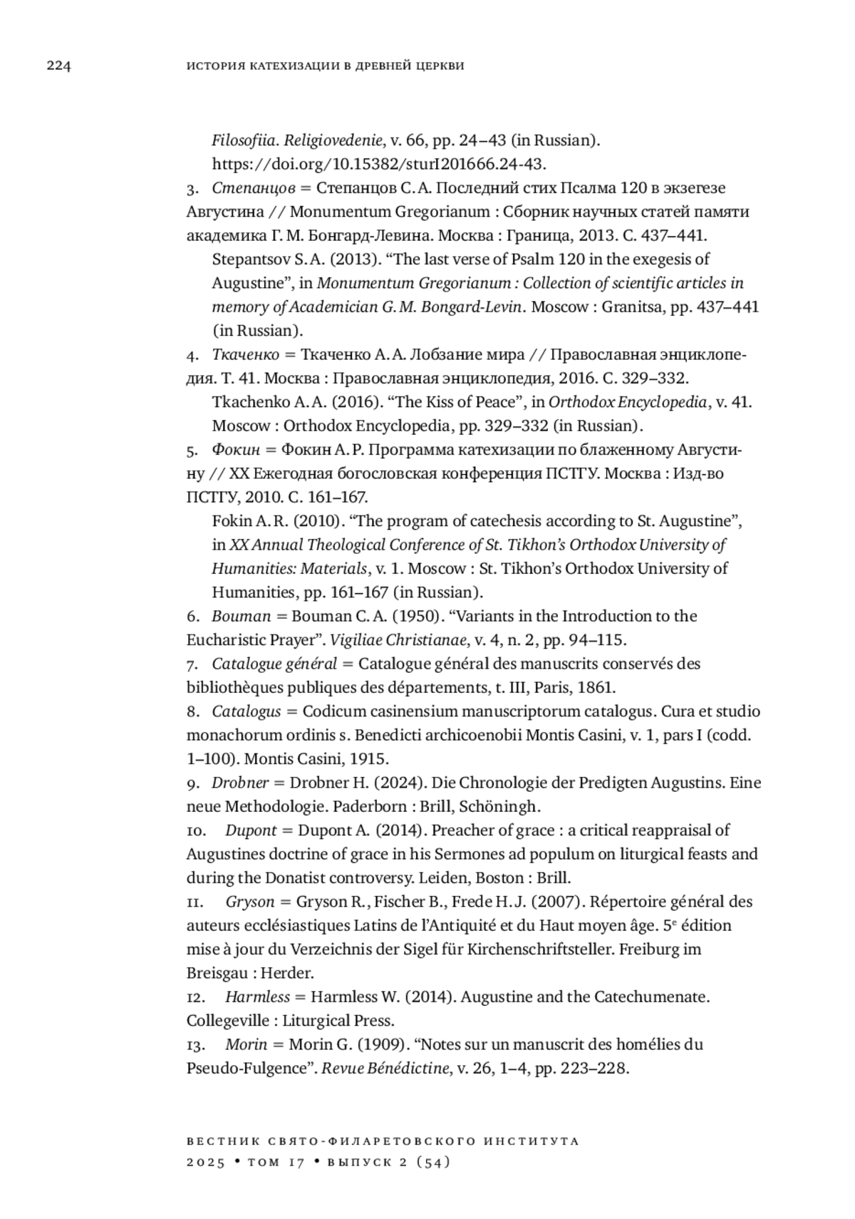 5. 	Фокин А. Р. Программа катехизации по блаженному Августину // XX Ежегодная богословская конференция ПСТГУ. Москва: Изд-во ПСТГУ, 2010. С. 161-167. EDN: UUYGIL