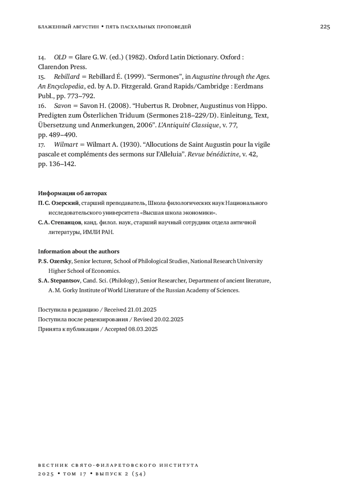 3. 	Степанцов С. А. Последний стих Псалма 120 в экзегезе Августина // Monumentum Gregorianum: Сборник научных статей памяти академика Г. М. Бонгард-Левина. Москва: Граница, 2013. С. 437-441. EDN: BQZRJH